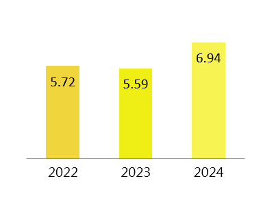 Greenhouse gas intensity of product in the past three years (Unit: GJ / ton)