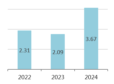 Water consumption in the past three years (Unit: m3/ton)